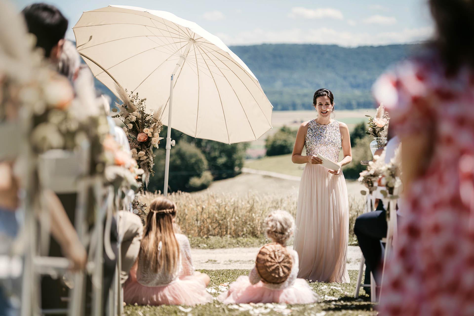 An eurem Hochzeitstag bin ich frühzeitig vor Ort, um sicherzustellen, dass alles vorbereitet ist. Gerne spreche ich mich mit den involvierten Personen ein letztes Mal ab, damit alles reibungslos funktioniert.
